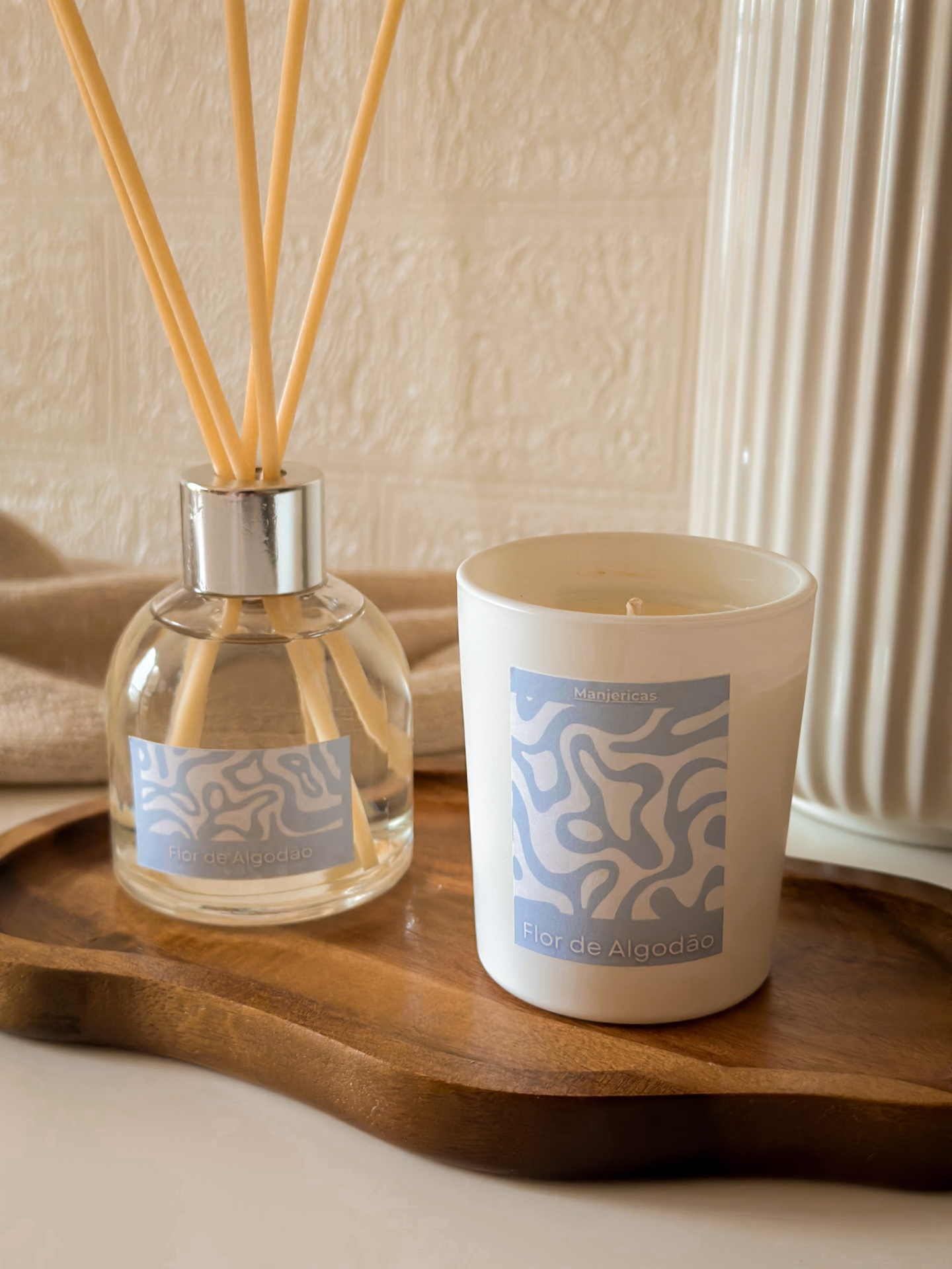 O Coffret Flor de Algodão junta dois essenciais para criar um ambiente calmo, fresco e equilibrado. A fragrância suave de flor de algodão envolve a casa com uma sensação de limpeza e conforto discreto, perfeita para o dia a dia.