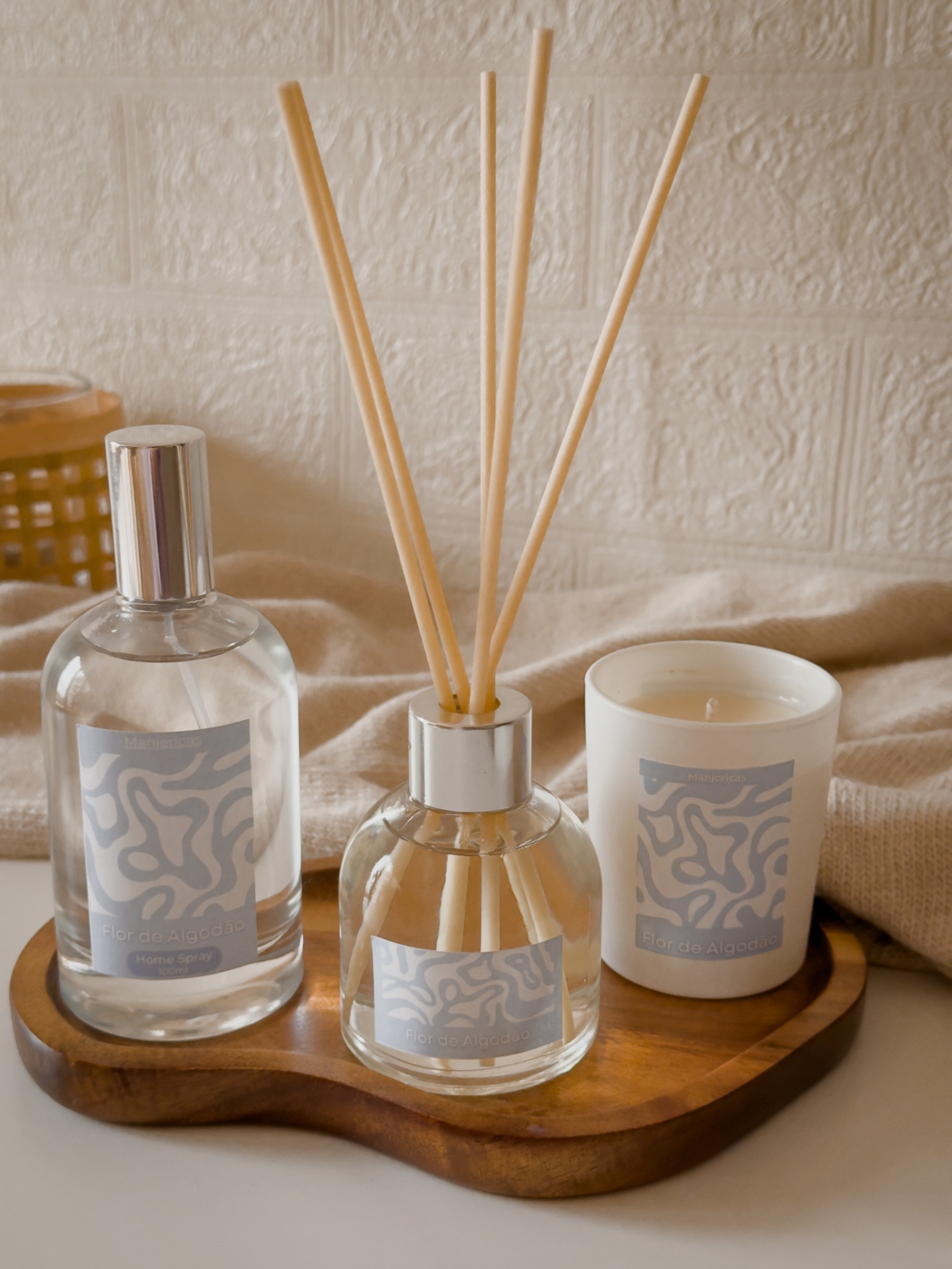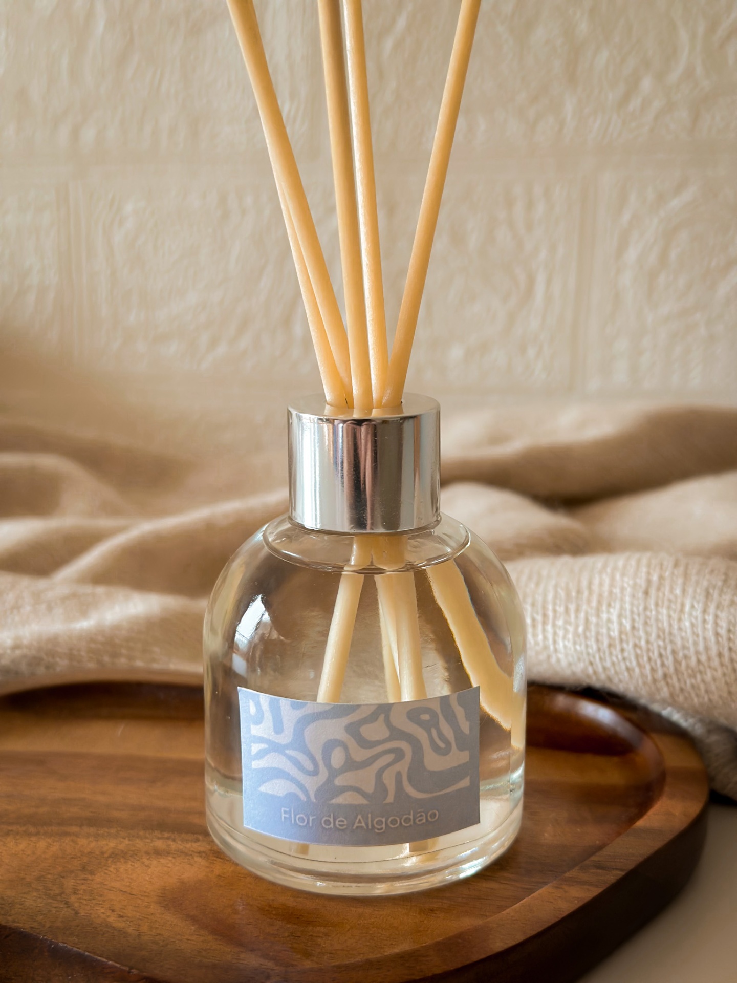 Inspirado na suavidade da flor de algodão, o difusor mikado Flor de Algodão perfuma o espaço de forma contínua e discreta, criando uma atmosfera leve, limpa e acolhedora.