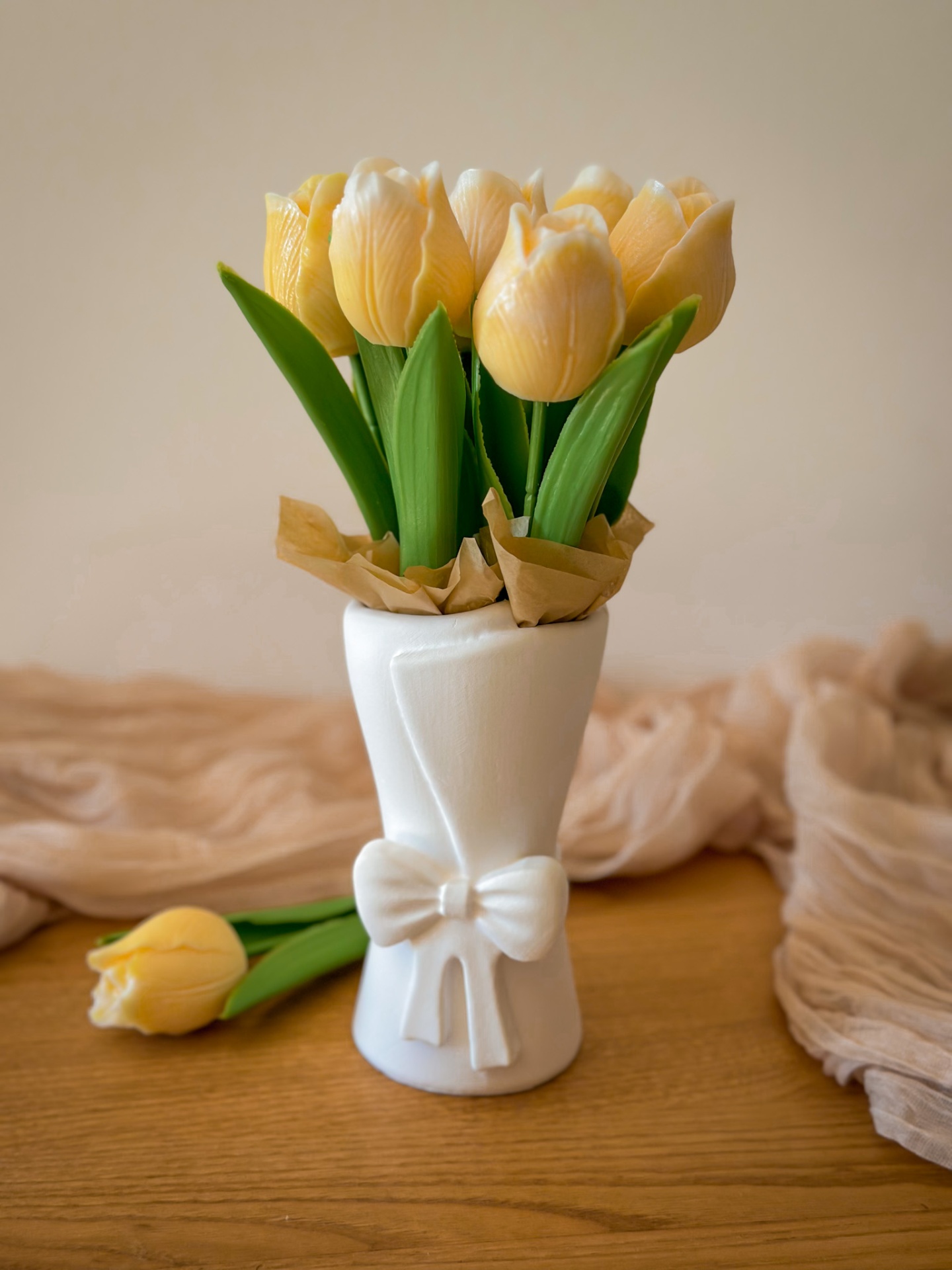 Home Dia da Mãe Jarra com tulipas em cera Jarra com tulipas em cera Adicionar cartão com mensagem 19,97 € Desconto de %. Compra este produto e ganha 19 Pontos! Saber mais Comprar Contactar Adicionar à wishlist Nem todas as flores são para poucos dias. Esta jarra com tulipas em cera foi pensada para ser um presente diferente — simples, bonito e que fica. As tulipas são feitas em cera perfumada, libertando um aroma suave e agradável no espaço. A jarra é produzida em gesso cerâmico, pensada para decorar qualquer divisão da casa. Perfeita para surpreender no Dia da Mãe. Marca Manjericas Características Partilhar