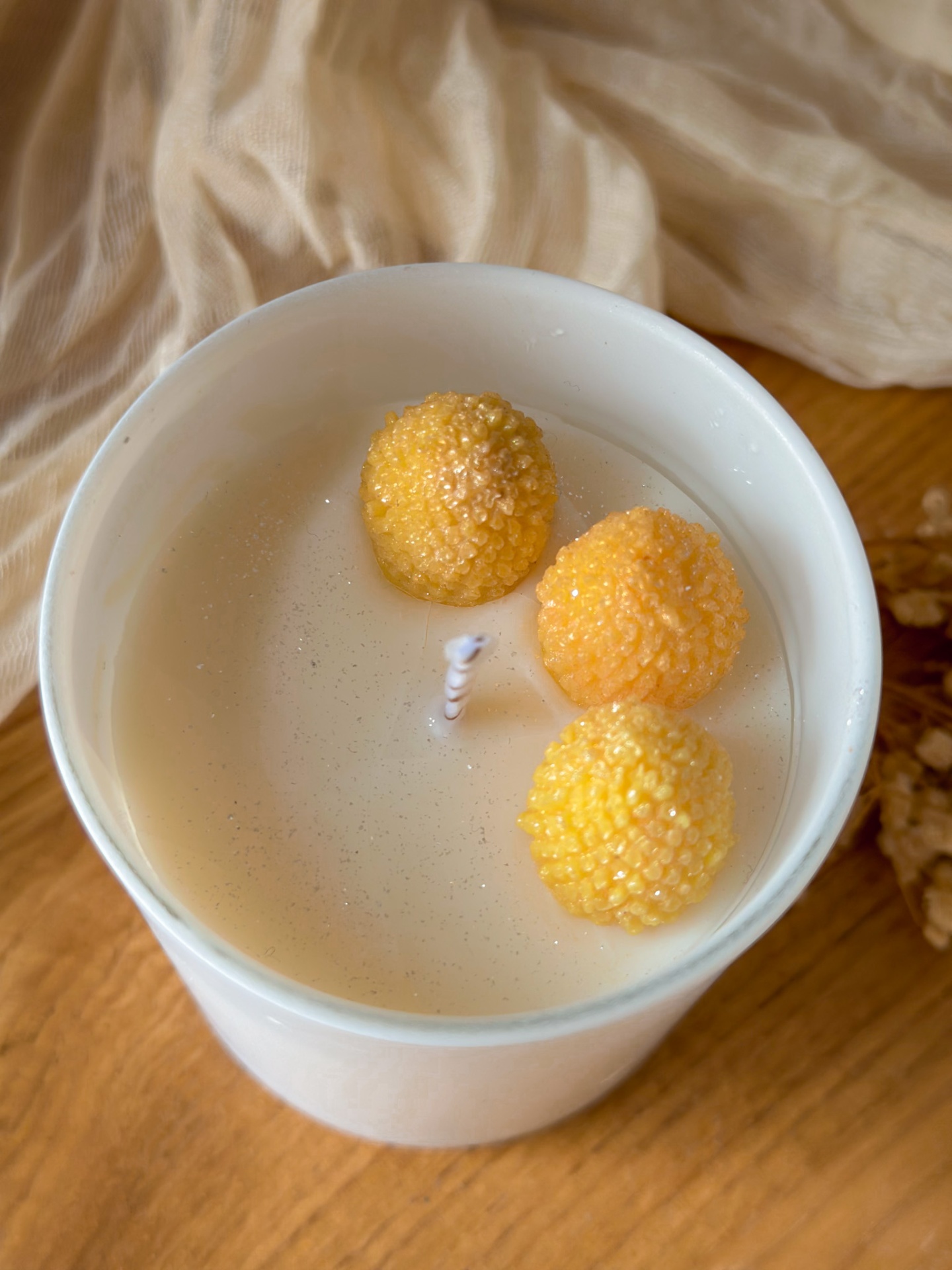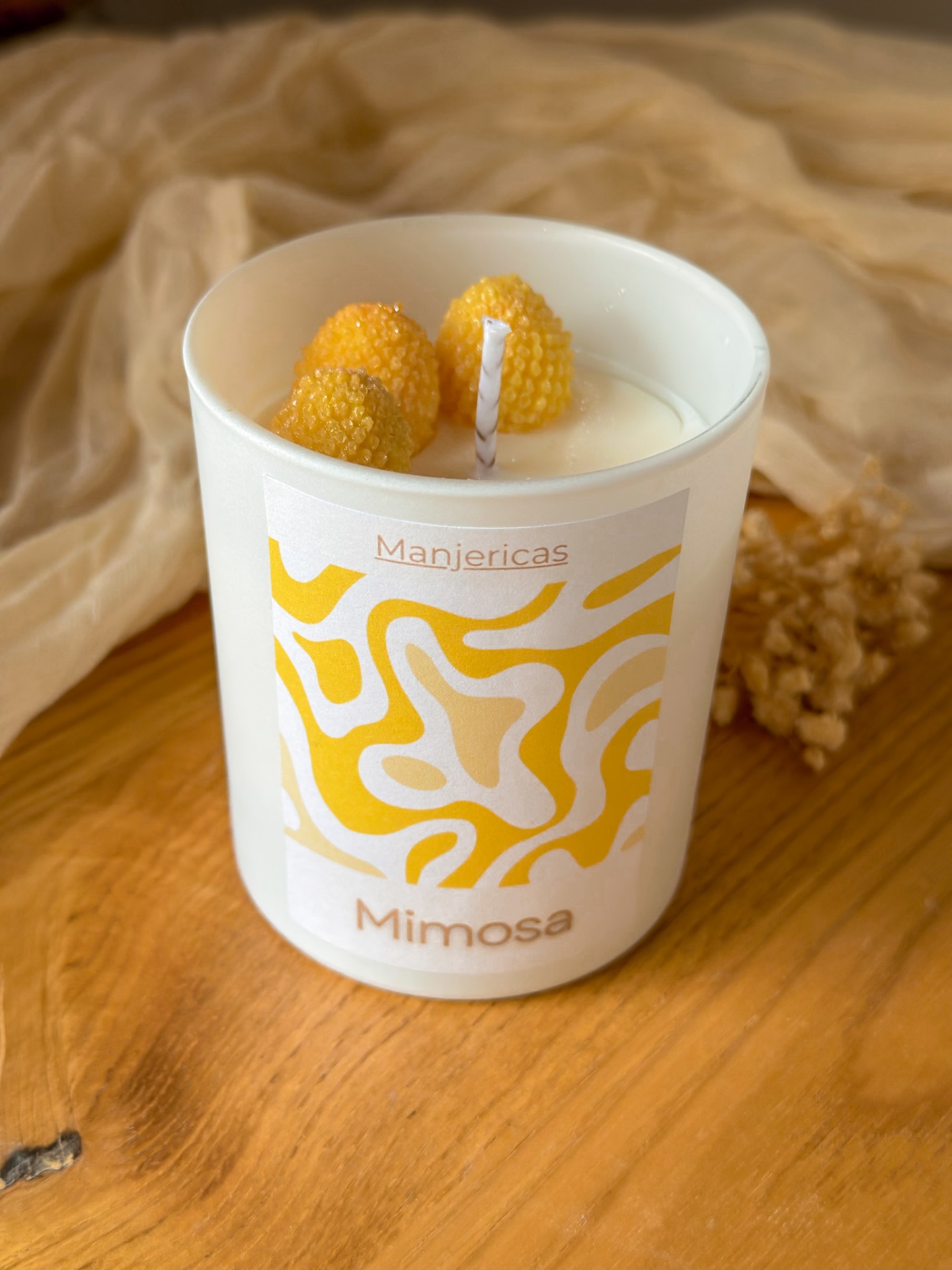 A fragrância abre com notas vibrantes de maçã, limão e tangerina, que despertam os sentidos e trazem leveza ao ambiente. No coração surge a mimosa, com a sua floralidade suave e ligeiramente melada, acompanhada pelo toque aromático do anis e pela frescura cítrica da tangerina.