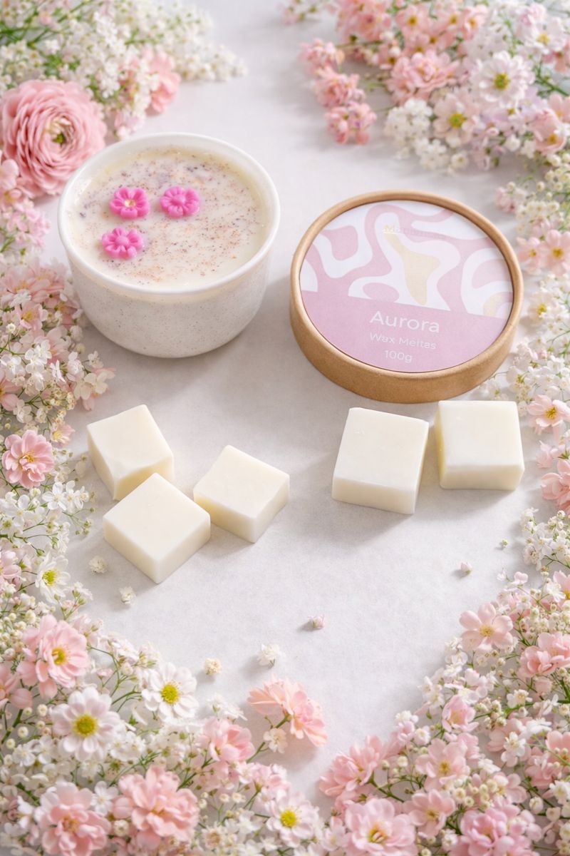 Os wax melts Aurora libertam um aroma floral suave e envolvente, que cria uma sensação de leveza e frescura no ambiente.